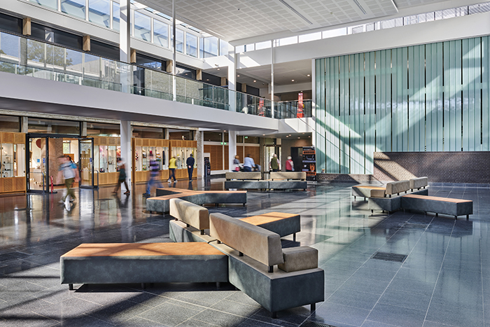 The atrium has several uses – its daily function is to serve as the museum entrance, but it was designed to perform additional roles including a theatre-style space for presentations and performances, and to host functions for up to 300 guests. To deliver each of these, the furniture selected needed to be flexible, hardwearing and easily moveable, as well as providing comfortable, attractive seating to a range of visitors from school groups to the elderly and young families.