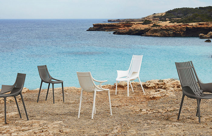 “We have a sample of the lounge chair from this collection in our showroom and it is so unexpectedly comfortable and welcoming. It’s made 100% from recycled fabrics from the Mediterranean Sea so it’s great for outdoor environments that want to incorporate eco-friendliness to their design.”