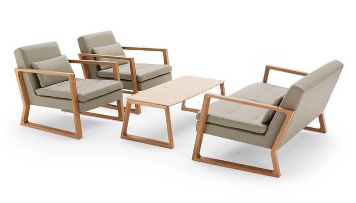 Left: Lyndon Keats is an occasional timber framed seating collection that is available with or without arms, Keats offers the ultimate in comfort and luxury courtesy of a seat recess that carries additional foam and a curved and contoured back design. Right: Lyndon Orlo’s smooth curves and simple lines reflect perfectly the design philosophy of David Fox.