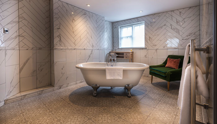 Considering the local community, soft informal warm leathers and wool finishes in the bar encourage dog walkers and hikers to take sanctuary in the bar, accompanied with practical but attractive hardwood and decorative tiled floors throughout.