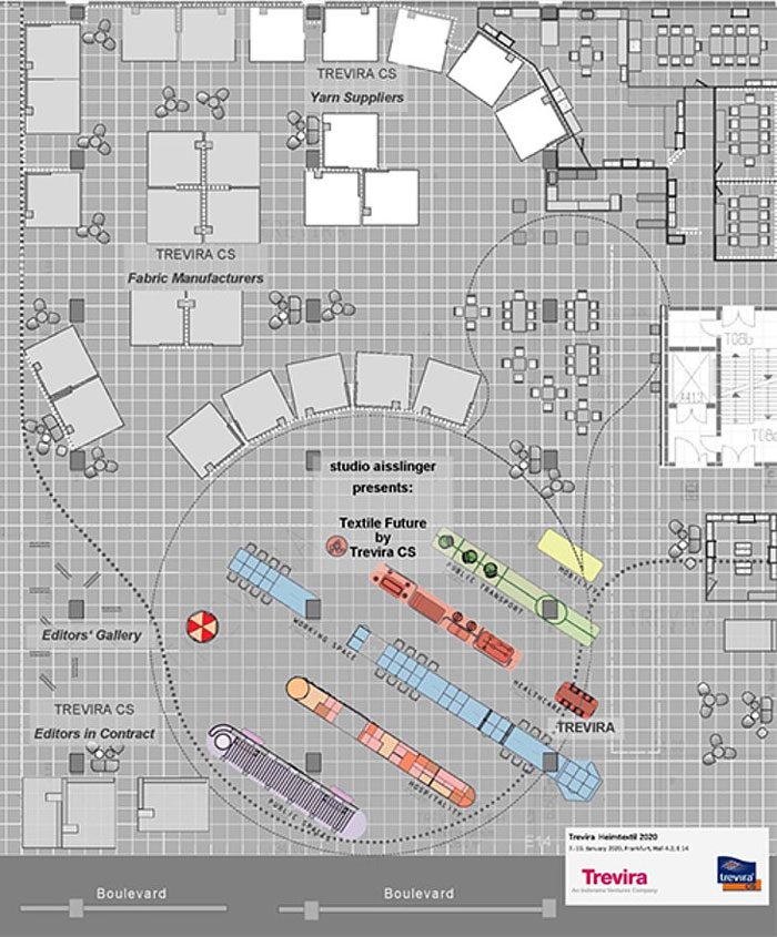 BCFA member Trevira at Heimtextil 2020, featuring an expanded joint fair booth and a special showcase ‘Textile Future’ by studio Aisslinger, Berlin.
