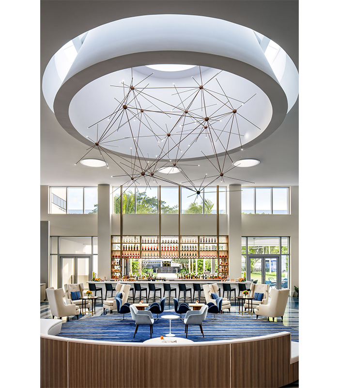 The light effect was also key, requiring a huge amount of technical Chelsom knowledge to create the desired ‘twinkle’ effect so that the chandelier correctly represented the constellation look that the client was after. Every single aspect of this project was carried out in the Chelsom UK headquarters, including all project management meetings, the overall design and engineering, sampling and prototyping and then the overall manufacture. The huge structure was broken down into many sections at the Chelsom HQ and then delivered and installed by the Chelsom in Florida. The final results speak for themselves and this is one of the most impressive light fittings that Chelsom has ever created. It was a technical and engineering marvel in its creation but also an aesthetic achievement to have remained so sympathetic to the original Dash Design brief.