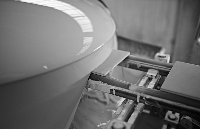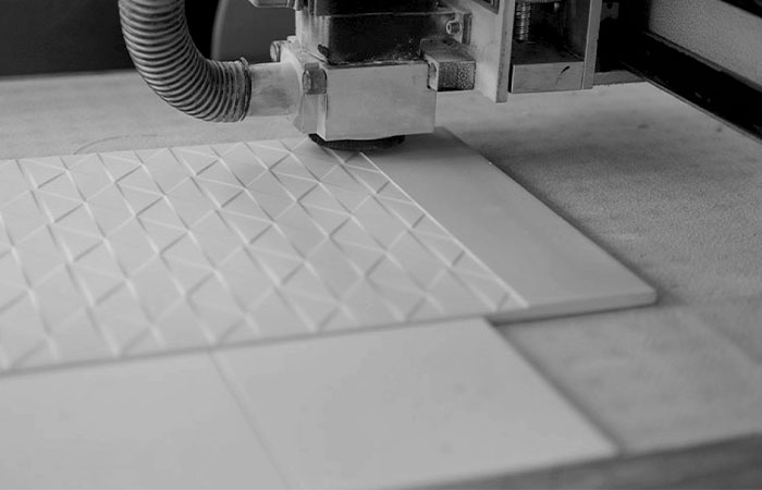 Once Johnson Tiles materials have been weighed and evaluated, they carefully mill them to dust in preparation to be pressed. The dust is pressed into one of our many size options, not only creating the perfect tile shape, but optimising the dust in readiness for it to be glazed, calibrating the moisture content and temperature of the product. With several different glaze options available from matt to gloss, hand-crafted to urban, each product is rigorously tested to ensure each tile meets our stringent quality standards. After glazing, our products head to the kiln to be fired, with temperature and duration of firing determined by size and other contributory factors.