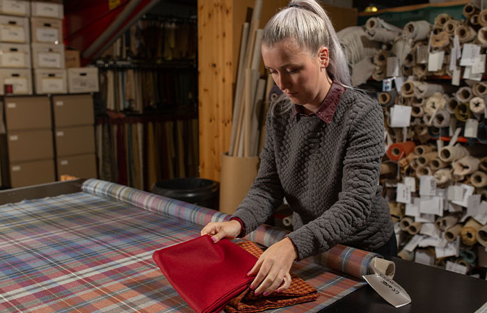 Currently, the design team in Perth consists of Trudie Ainsworth and Siobhan Smith. Trudie is the most experienced designer having been with The Isle Mill for 13 years, along with her experience she also brings extensive knowledge to the role having a degree in woven textiles. Siobhan has been an integral part of the design team since 2015. Before joining as a designer, Siobhan was a weaver at their textile mill in Keith. This provided her with extensive knowledge and experience in weaving which she has carried into her role as a designer.