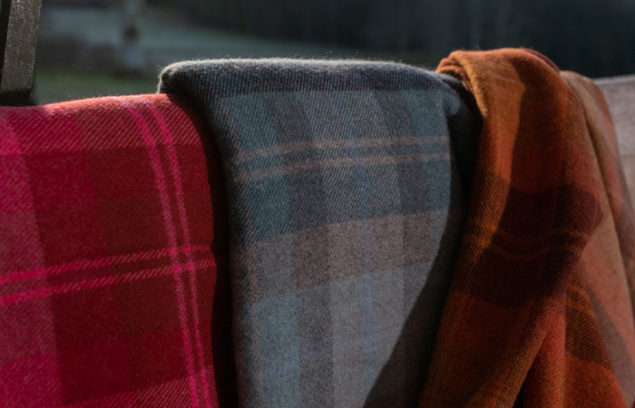 The Isle Mill’s manufacturing process is based 100% in Scotland, The Isle Mill’s weaving facility is based in Keith in the Highlands of Scotland. Along with retaining many traditional skills, The Isle Mill utilises modern and flexible manufacturing techniques. The Isle Mill is a specialist weaver in full control of its manufacturing process, offering clients the facility of long and short runs, a cut length service from stocked collections and a custom and exclusive design service. The weaving plant has a range of machinery from modern jacquard and high speed Somet weaving machines to specialist Dornier looms. The custom design service, which is becoming increasingly popular, brings to life even the most technical and ornate custom designs using The Isle Mill’s looms. Once warped and woven, all the fabrics are checked and hand mended by the highly skilled mending team. The fabrics are then finished, this is a process that can comprise of scouring/washing, dyeing, raising, cropping/shearing and final pressing.