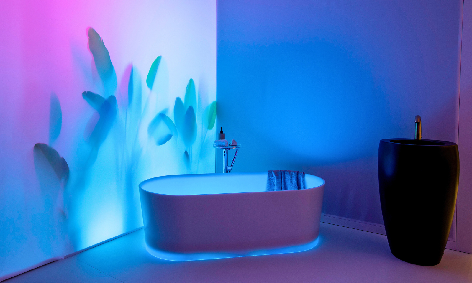 LAUFEN’s new Luminex bathtub is inspired by the energizing power of light and colour which have been used, since ancient times to improve our mental and physical balance. Thanks to LED technology and a high-tech remote control, users can not only modulate the intensity of the light and colours but also choose from a range of settings to intensify the bathing experience and create ambient lighting effects according to the mood of the moment.