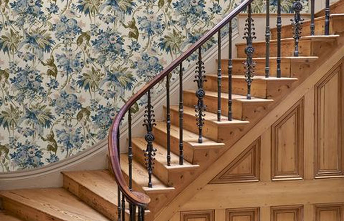 The Linwood way would be to choose a wallpaper – one of their own designs, obviously – and then create a room around it, but there’s one exception to this rule: architectural details. If you’re lucky enough to live in a period house, then we feel it’s only right to let the house choose the wallpaper. Monkey Puzzle, Paradise, which depicts a classical landscape of tropical palms and monkeys looks rather good against this sweeping Georgian staircase and panelling. When thinking about wallpaper designs, you don’t have to be rigid but sympathetic is good.