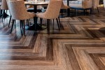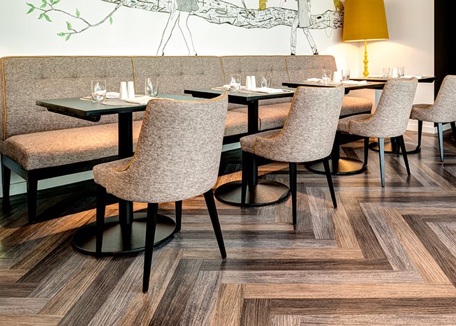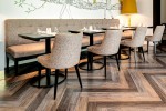 Amtico can also be found in the latest addition to Selfridges’ selection of eateries. Sears Balcony Champagne Bar resides on the fourth floor of the Birmingham store, with stunning views over the bustling shopping district it’s the the perfect spot to indulge in some luxury. Local design firm Harrison were tasked with updating an existing restaurant, working closely with Selfridges’ in-house team to create a haven in this busy department store. Amtico Signature Quill products in Sable, Kohl and Gesso have been used in a striking Herringbone pattern across the 220 sqm space.